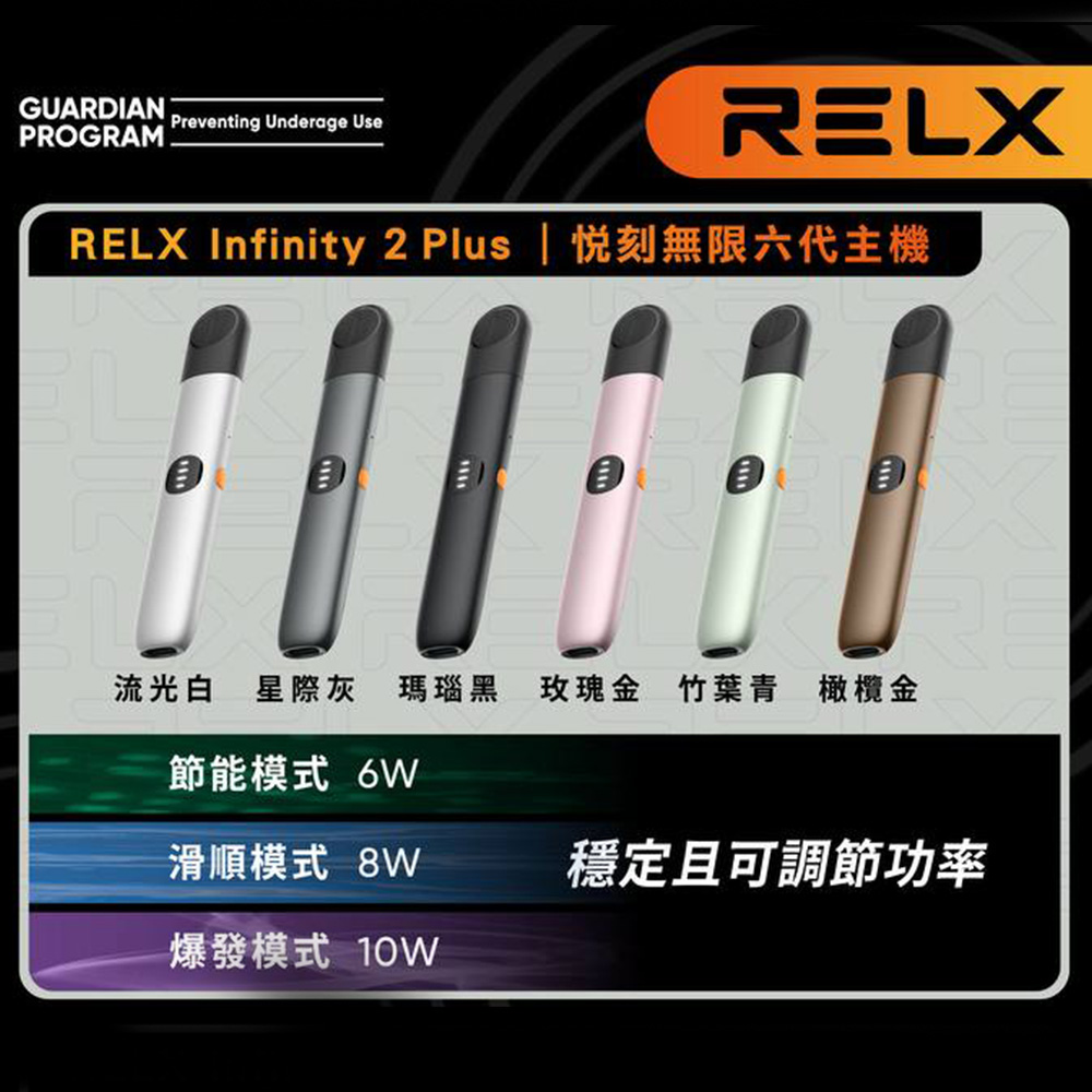 Eco Mode (5.5W): 節能模式,專為那些追求更多口味和更持久電池壽命的用戶而設計。 Smooth Mode (6.5W): 經典SuperSmooth體驗,提供無與倫比的滑順吸煙感受。 Boost Mode (8W): 解鎖超滿足濃煙體驗,專為追求更強烈滿足感的用戶設計。 這些模式讓您能夠根據您的心情和需求來調整吸煙體驗,真正實現個性化吸煙。必須使用Relx 6代(relx infinity Pro 2)煙彈才能開啓3段功率模式。其他4-5代通用煙彈只能使用經典smooth mode(6.5w).